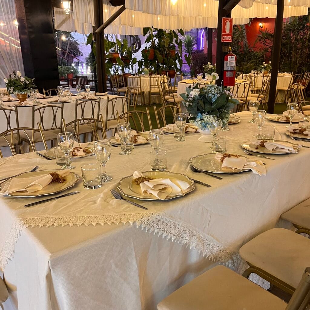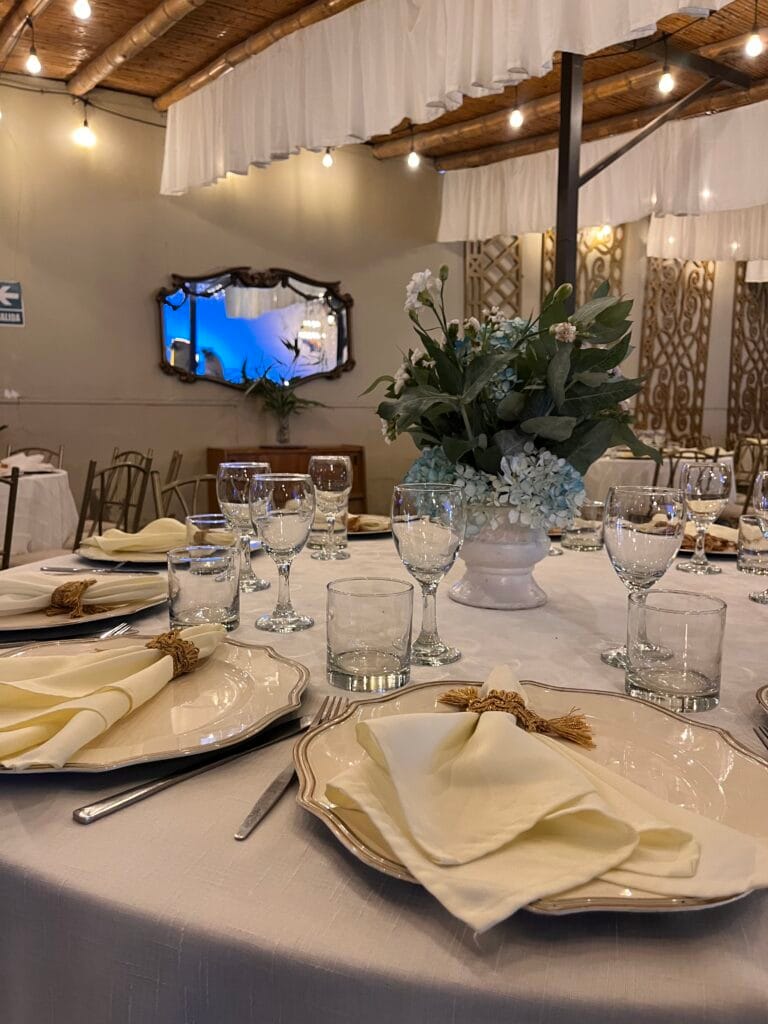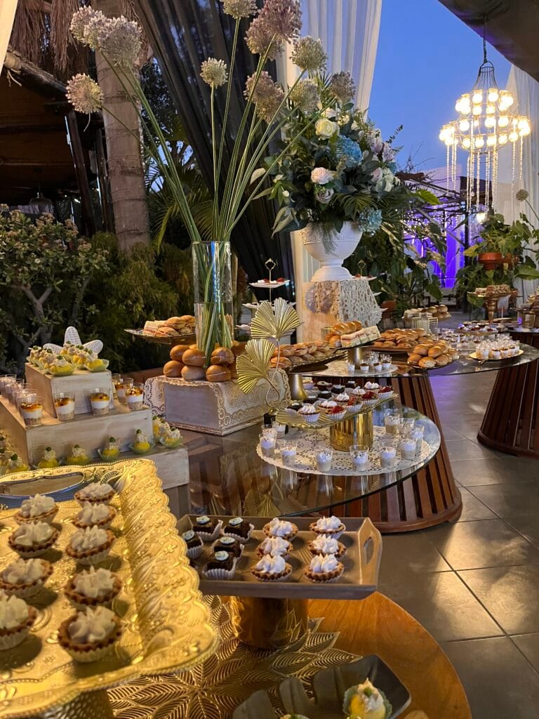 Las mesas, impecablemente decoradas, reflejaban un estilo moderno y romántico, con detalles que invitaban a los invitados a sumergirse en la celebración. La noche fue un festín para los sentidos. Sobre mesas de cristal, un desfile de bocaditos y postres, desde delicadas tartaletas hasta exquisitos dulces, esperaba a los invitados, cada bocado una pequeña obra de arte que se disfrutaba entre risas y brindis. El ambiente era de felicidad pura, un reflejo del amor que flotaba en el aire.