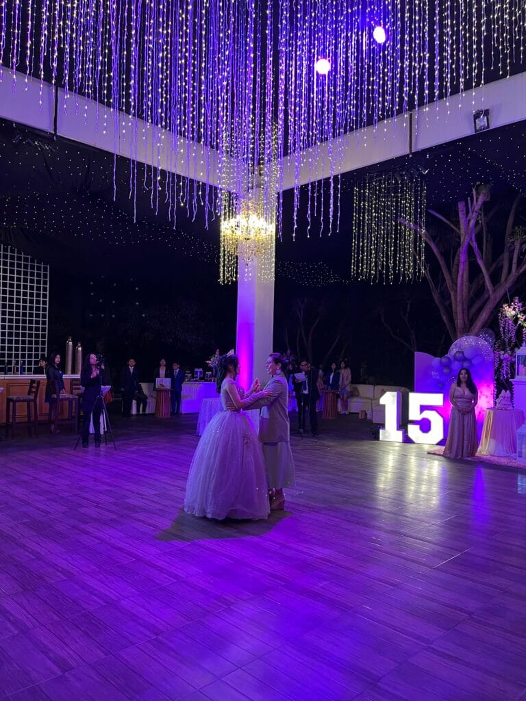El salón lucía radiante: cortinas vaporosas, luces cálidas, centros de mesa elegantes y una pista de baile que parecía hecha para soñar. Cada detalle fue pensado para que esa noche no solo se viva, sino se recuerde por siempre.