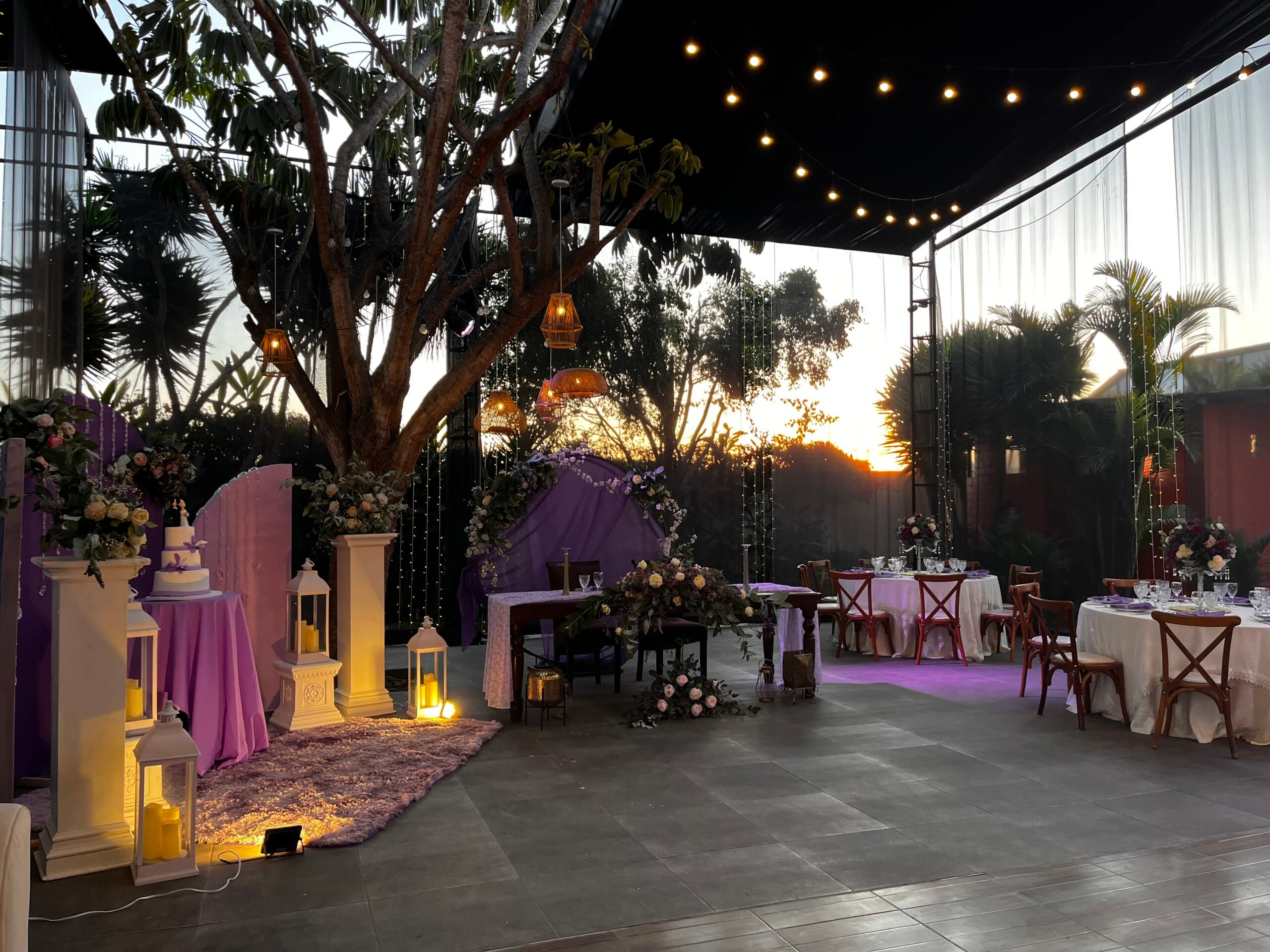 A medida que el sol se ponía, el ambiente se llenaba de un brillo mágico. El árbol principal del lugar, envuelto en un manto de luces cálidas, y las lámparas colgantes, iluminaban la celebración. Era una noche para celebrar una vida juntos, para reír, bailar y brindar por un futuro que comenzaba en ese mismo instante.