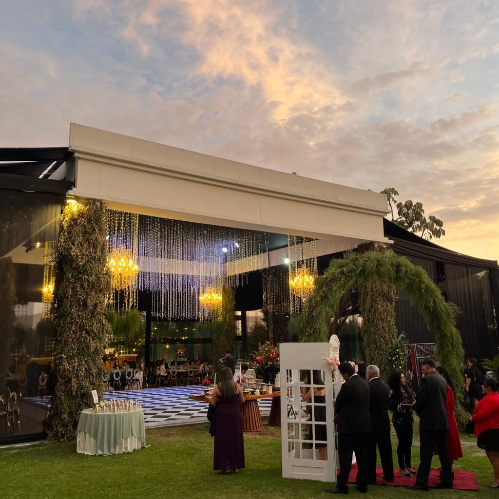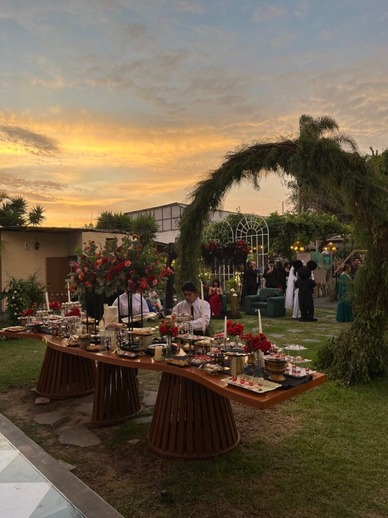 El atardecer en el jardín se convirtió en un lienzo de colores cálidos, anunciando la noche mágica que uniría a Marita y José Antonio. El espacio se había transformado en un palacio al aire libre, con techos adornados con miles de luces que caían como lluvia de estrellas, y columnas vestidas de un verde vibrante que se alzaban majestuosas. La elegancia se fusionaba con la naturaleza, creando un ambiente de pura fantasía.