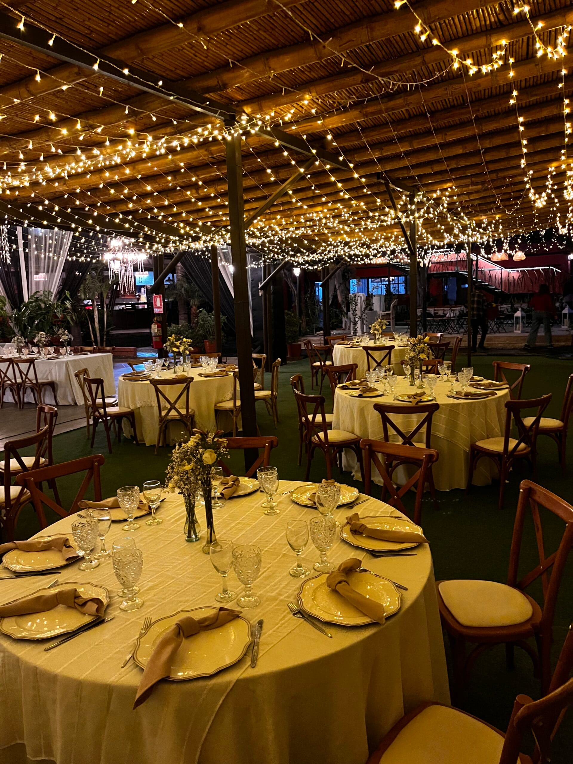 El atardecer en Tacna pintó el cielo con tonos suaves, marcando el inicio de una noche mágica en la terraza de El Hueco. Cada rincón se había transformado para celebrar el amor. Las sillas se alineaban bajo una pérgola de enredaderas, adornada con luces cálidas que descendían en cascada y faroles de mimbre que le daban un aire íntimo al lugar. Este era el escenario perfecto, donde los sueños de una vida juntos estaban a punto de volverse realidad.
