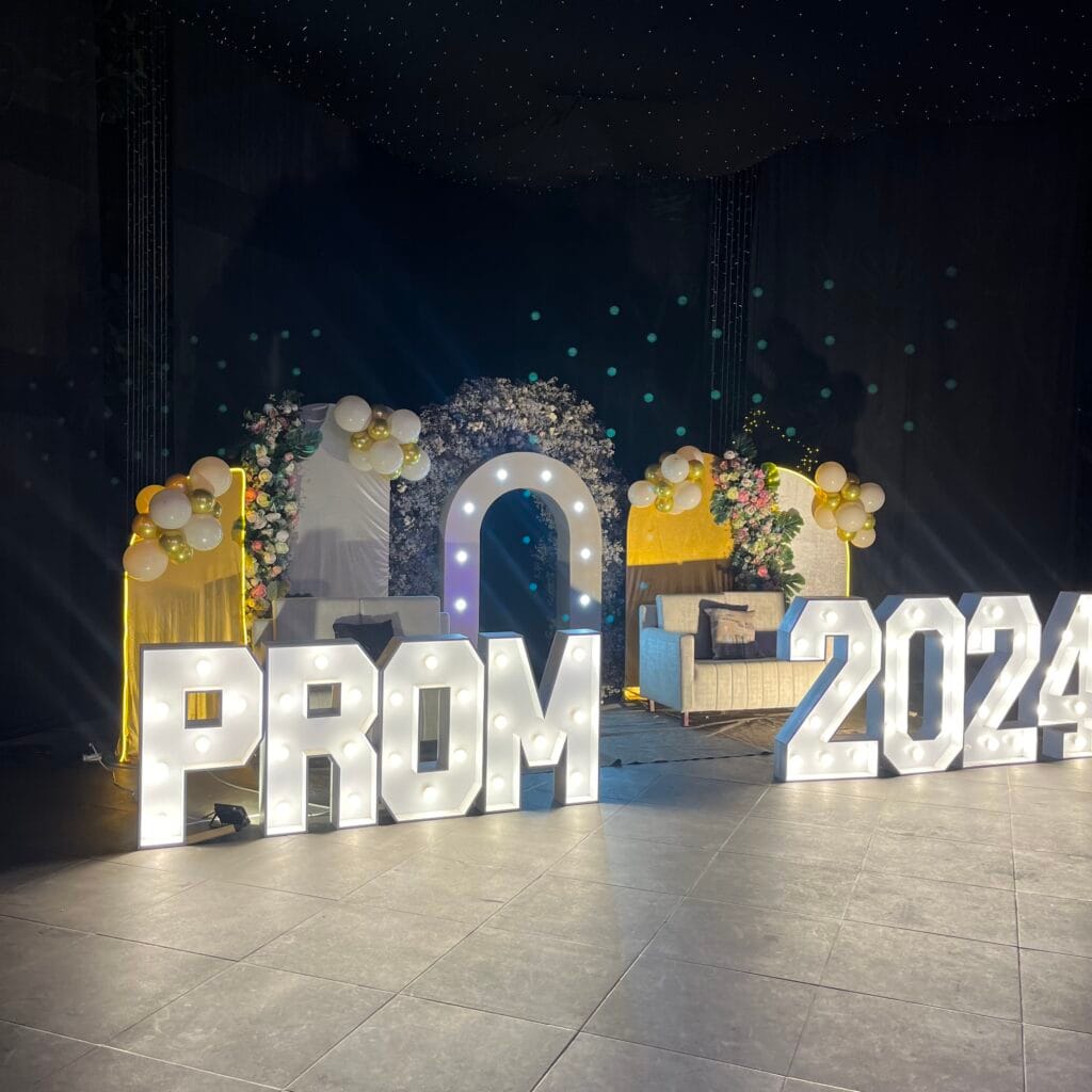 La noche cobró vida en El Hueco con una energía inigualable. El gran letrero luminoso de «PROM 2024» y los arcos florales crearon el escenario perfecto para que los graduados se sintieran las estrellas de la noche. Este rincón, diseñado para la fantasía, fue el telón de fondo ideal para capturar las fotos más memorables antes de sumergirse en la celebración.