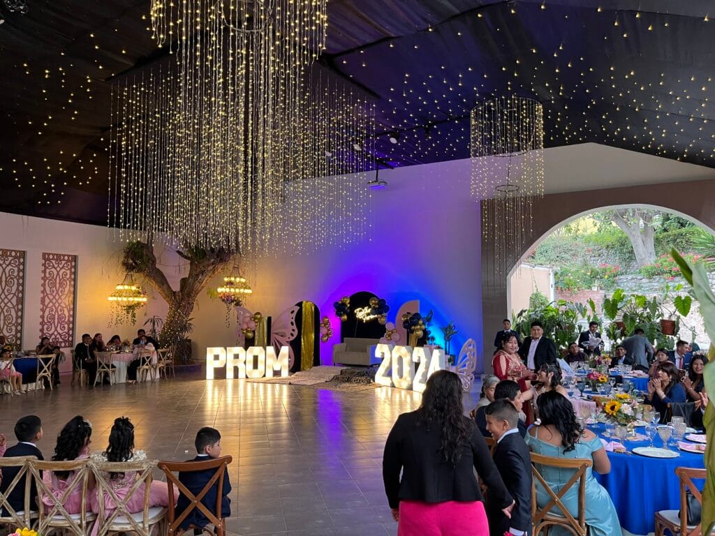 La magia de los sueños infantiles cobró vida en El Hueco para celebrar la Promoción Inicial. Un deslumbrante photobooth con las letras «PROM 2024» y un mensaje de «Together Forever» esperaba a los pequeños graduados, rodeado de globos y luces suaves. Fue el lugar perfecto para inmortalizar el gran paso que daban hacia nuevas aventuras, con sonrisas que iluminaban la noche.