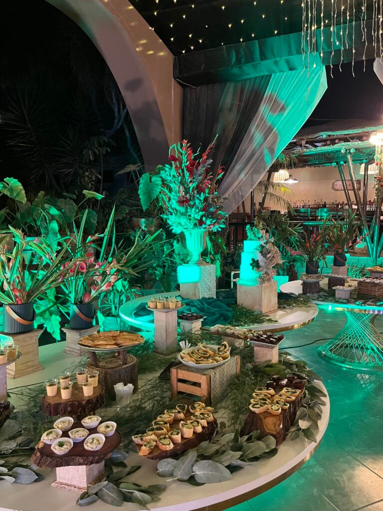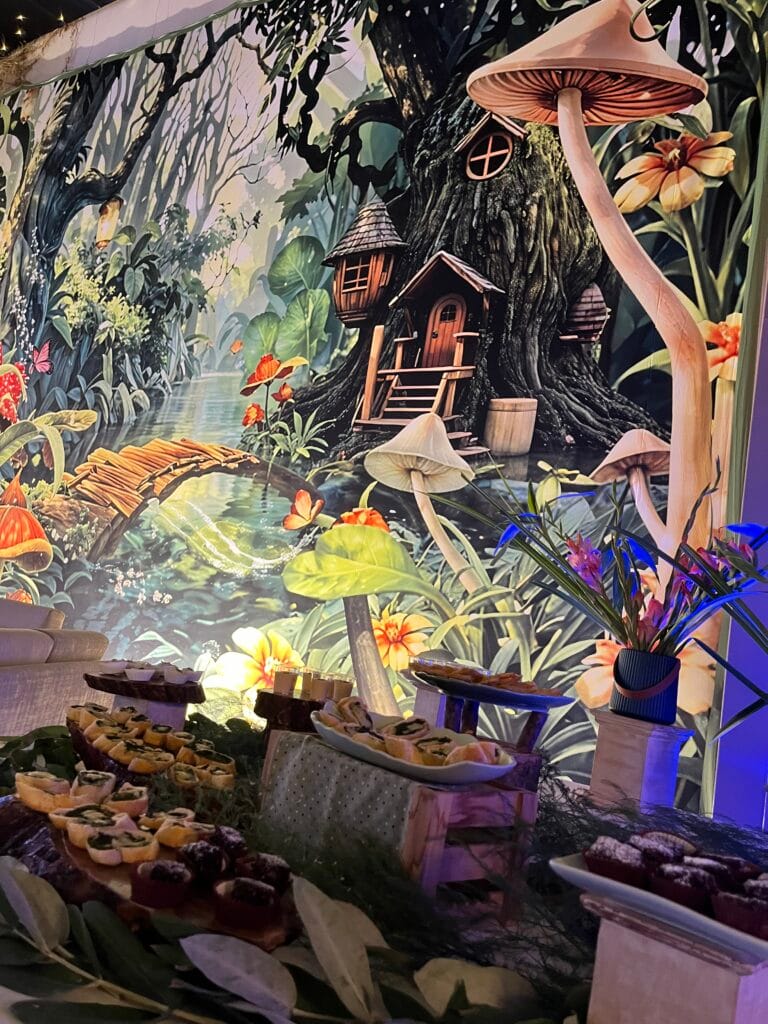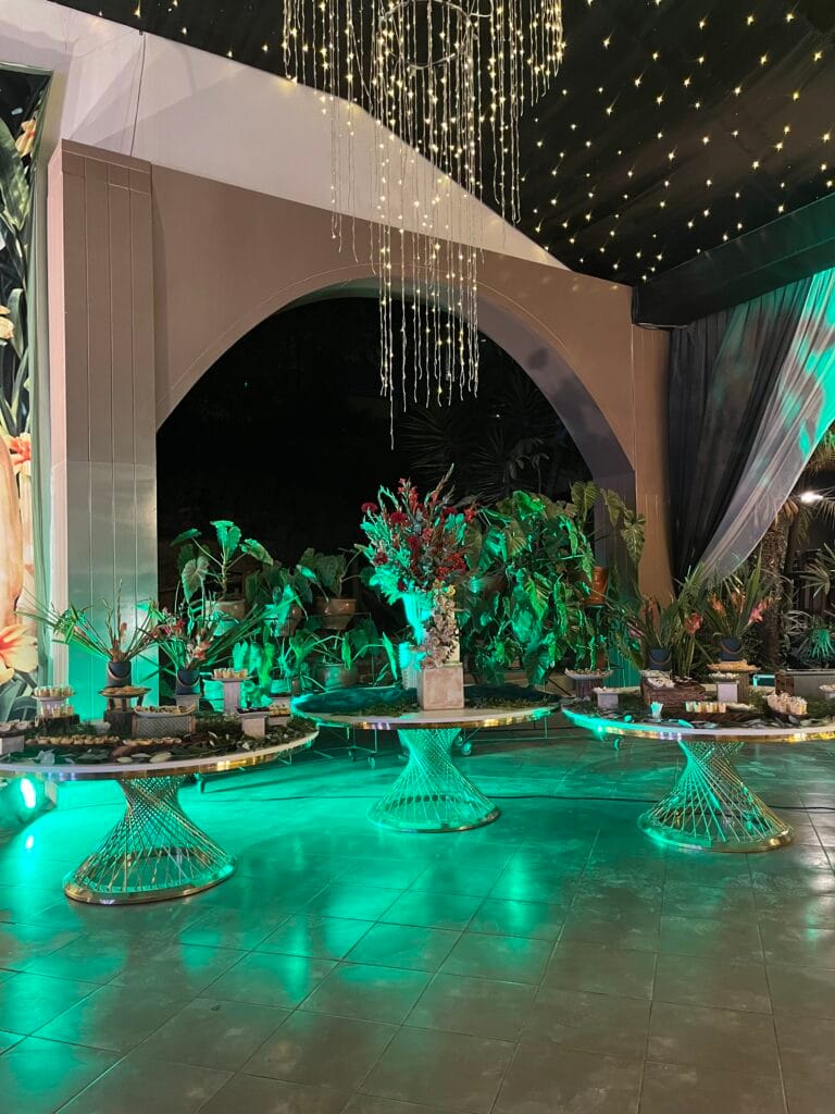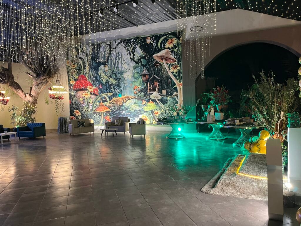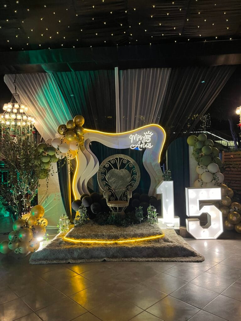 El ambiente se llenó de misterio y encanto. Un sendero de hojas secas, faroles colgantes y árboles iluminados daban la bienvenida a un mundo escondido: un bosque mágico donde los sueños se hacen realidad. Así comenzó esta celebración de quince años, donde la naturaleza y la fantasía se dieron la mano.