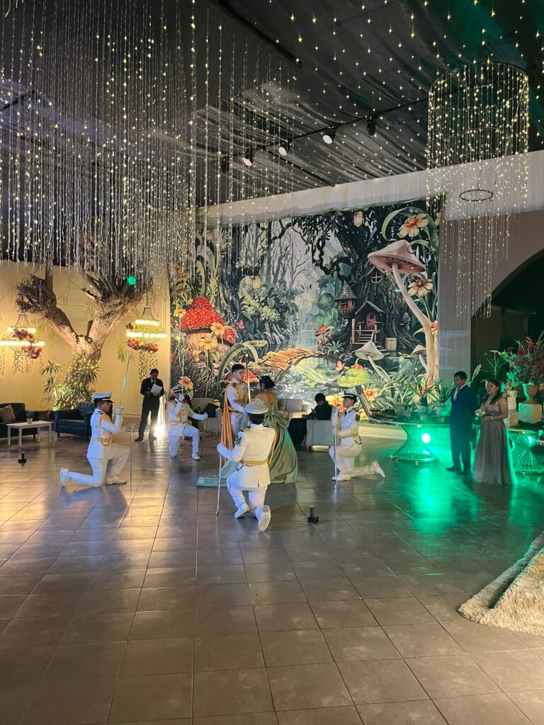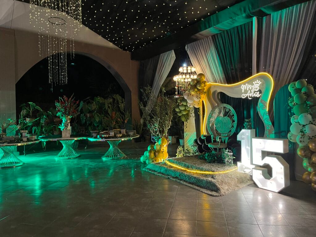 La quinceañera apareció como una musa del bosque, con un vestido en tonos tierra y verde esmeralda. Su ingreso fue acompañado por una suave neblina y una melodía que parecía salir del corazón mismo de la naturaleza. Las mesas estaban adornadas con ramas, velas y flores silvestres, creando una atmósfera serena y profundamente emotiva.